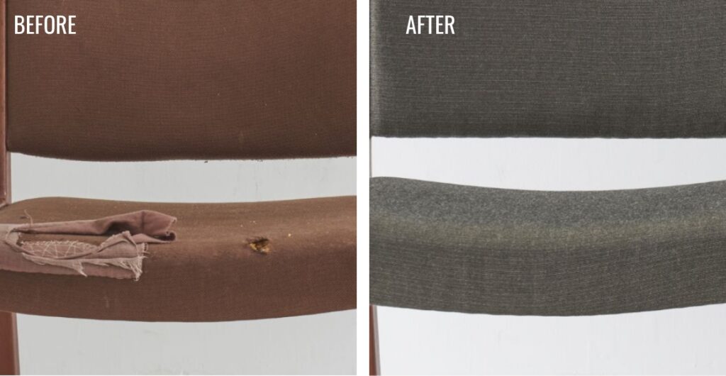 最も多いご用命が椅子の座面の張り替えです。バリエーション豊富な張地の中からお好みのものをお選びいただけます。またご要望に合わせてぐらつきの調整や傷の補修なども承ります。