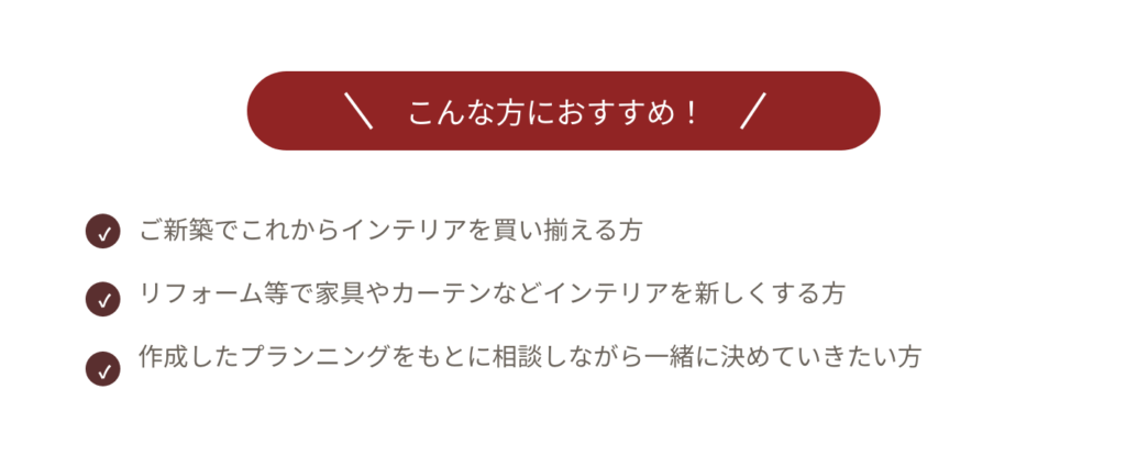 間違いのない家具選びをお手伝いします。
